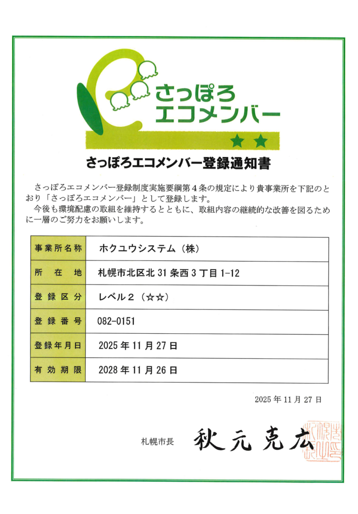 | 商 号 | ホクユウシステム株式会社[Hokuyu system Co.,ltd.] |